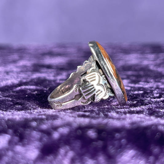 Native American Navajo Sterling Silver Mens Ring 925 Calvin Begay Starry Night Opal Size Z / 12.5