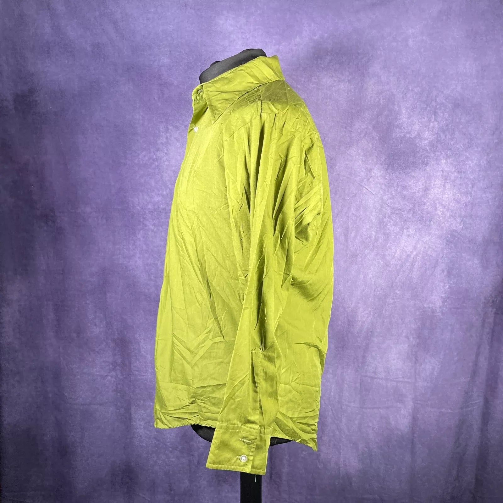 Vintage 1970s Manhattan M Shirt Olive Green Dagger Collar