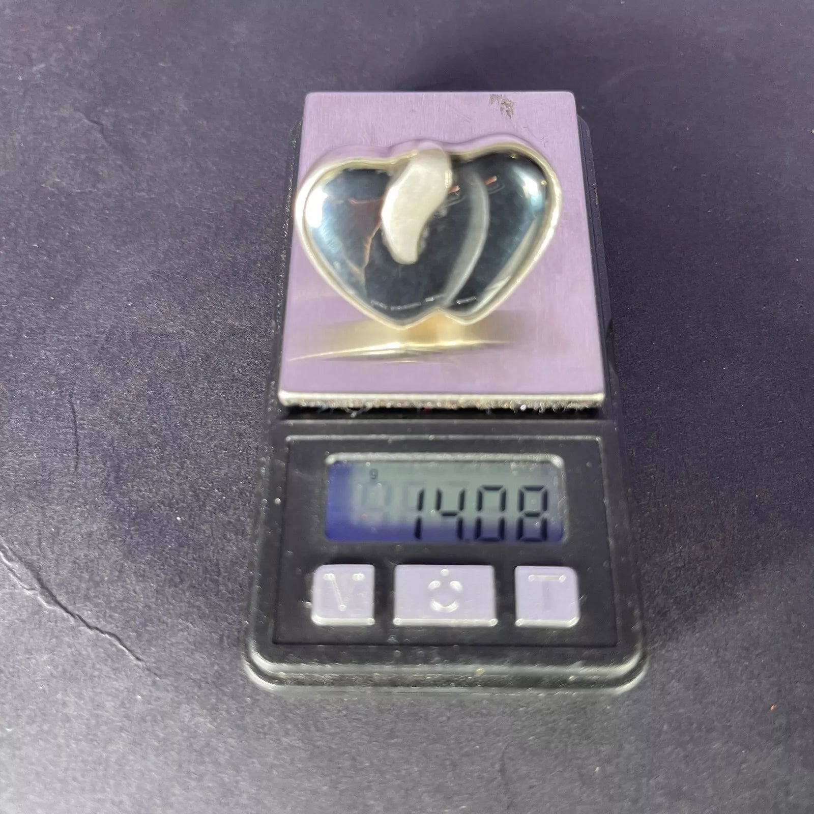 Vintage 1990s Onyx Double Heart SIlver Ring Size Q.5 / 8.25