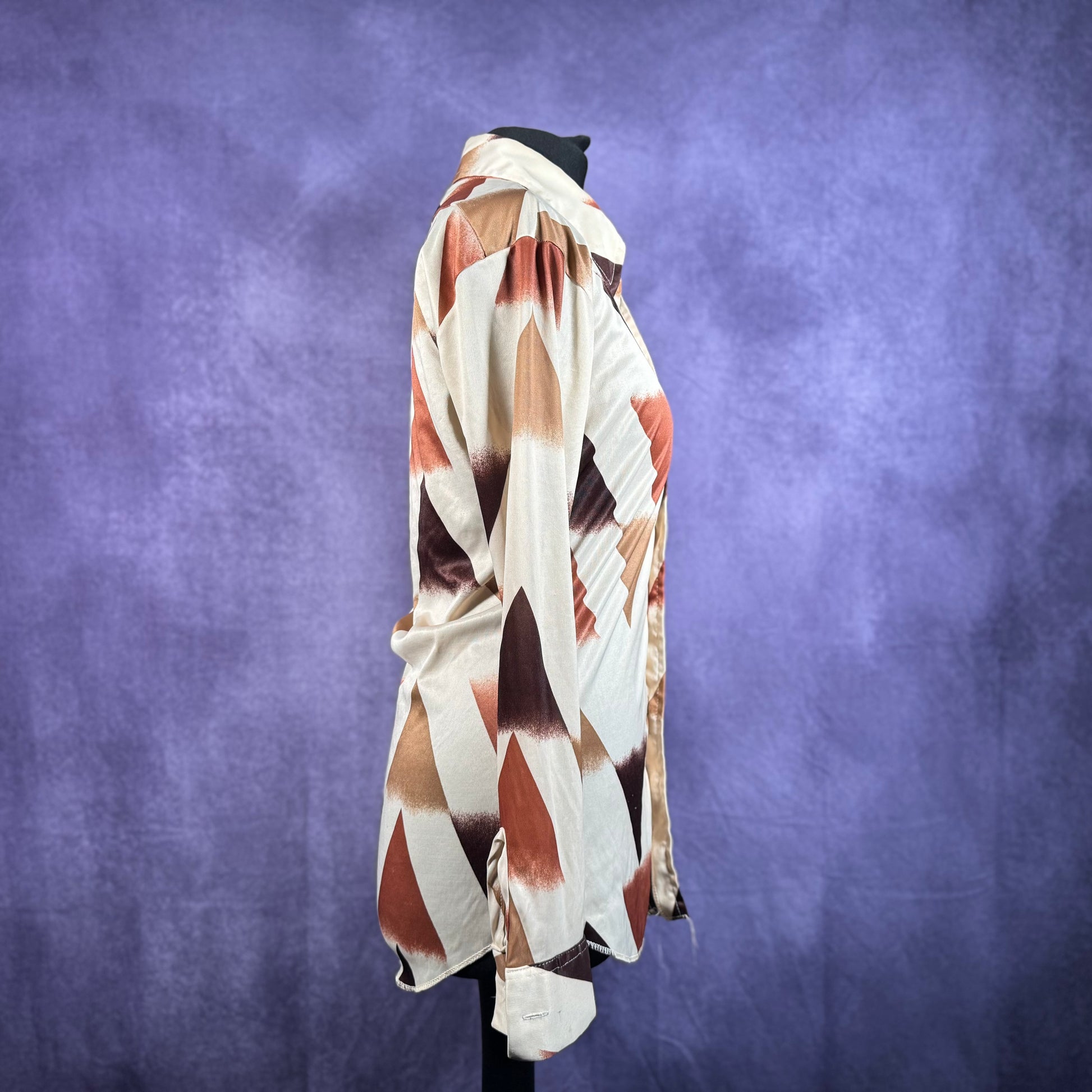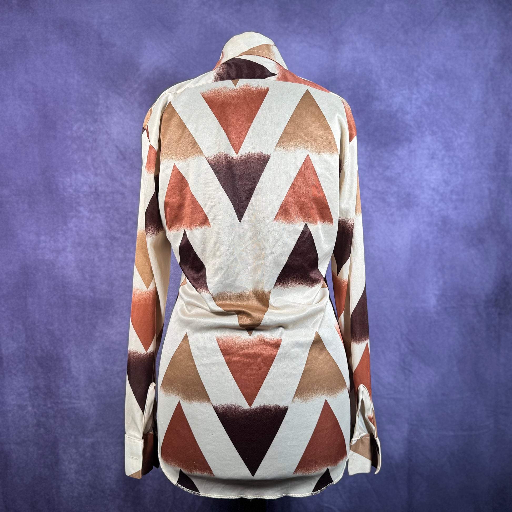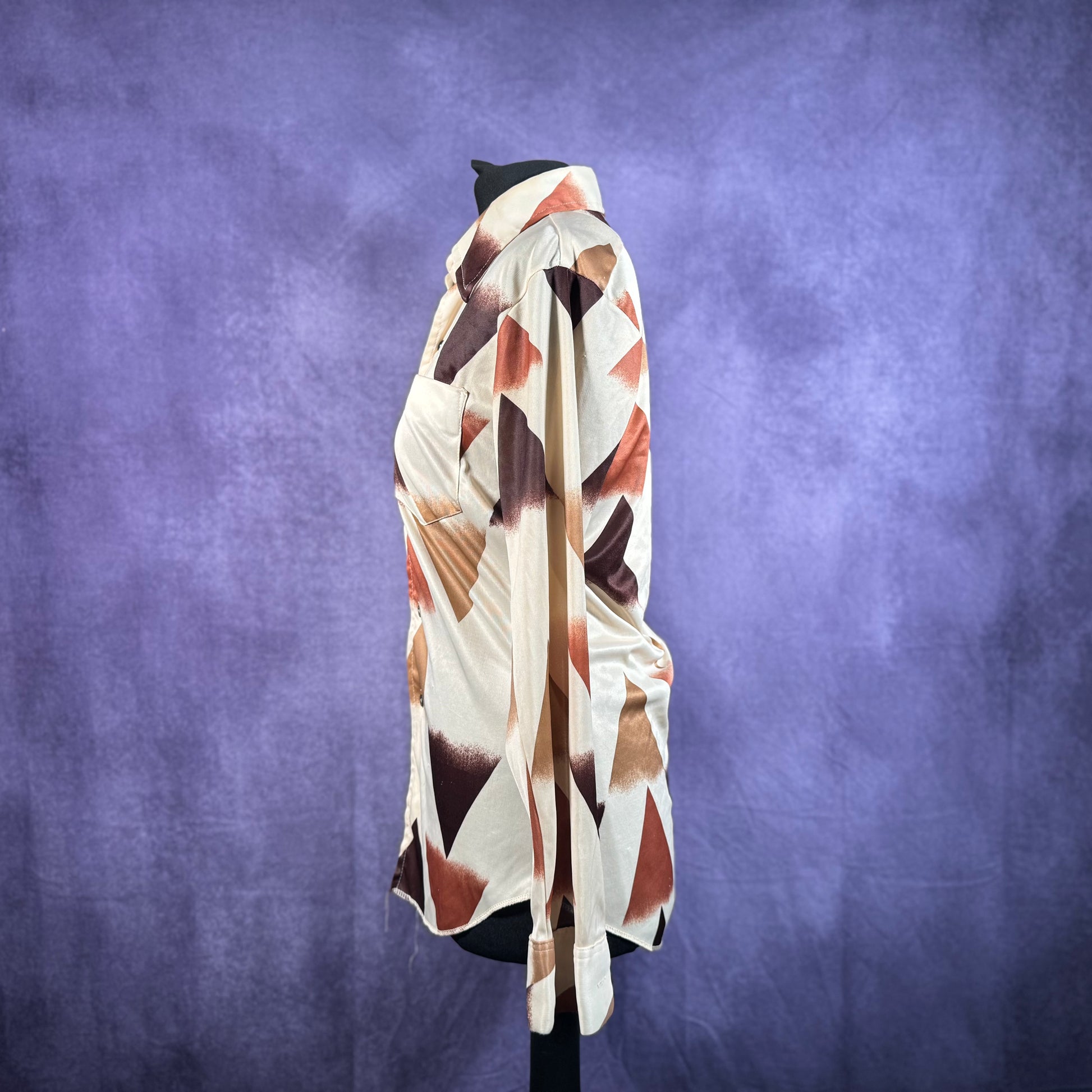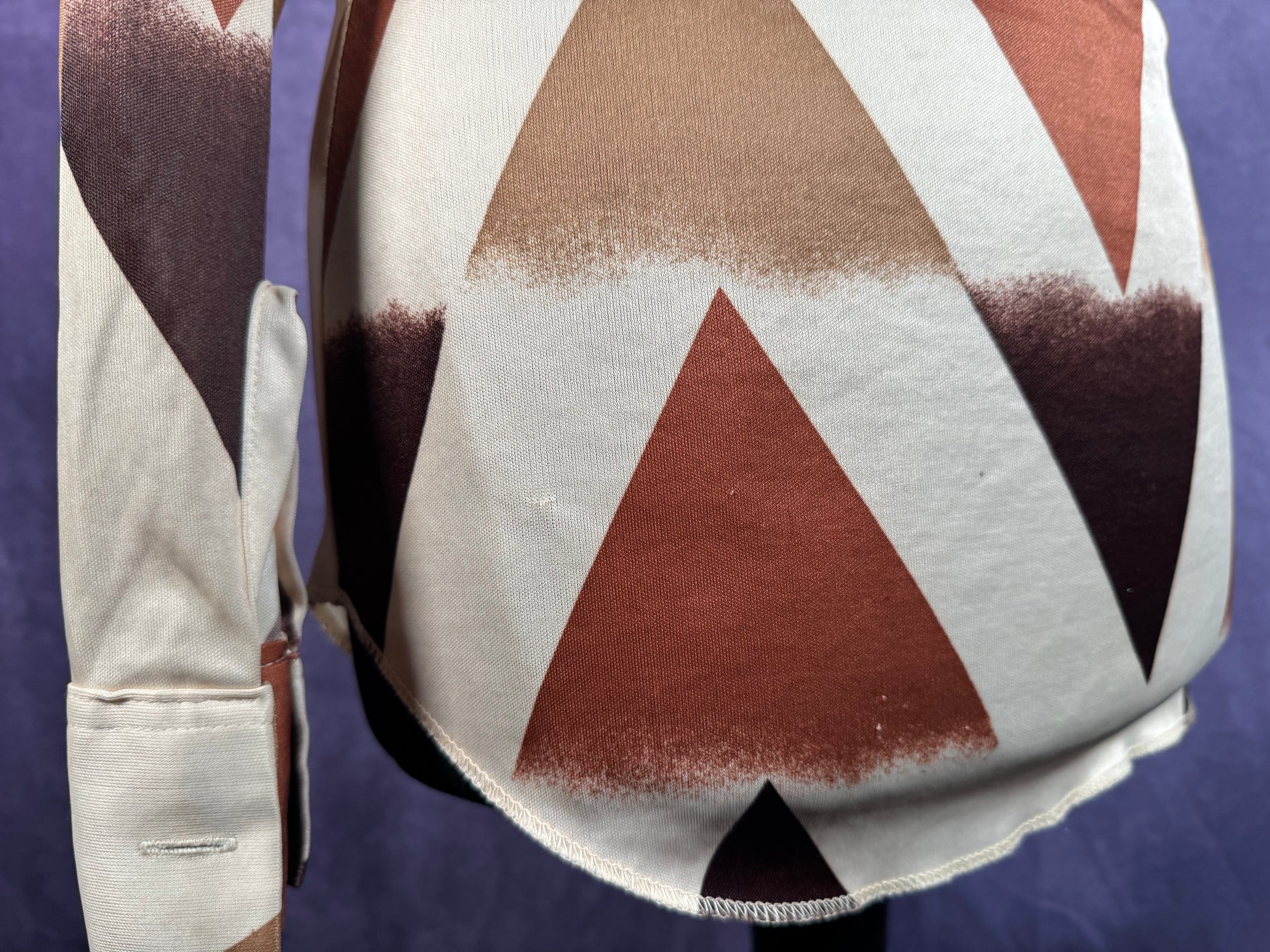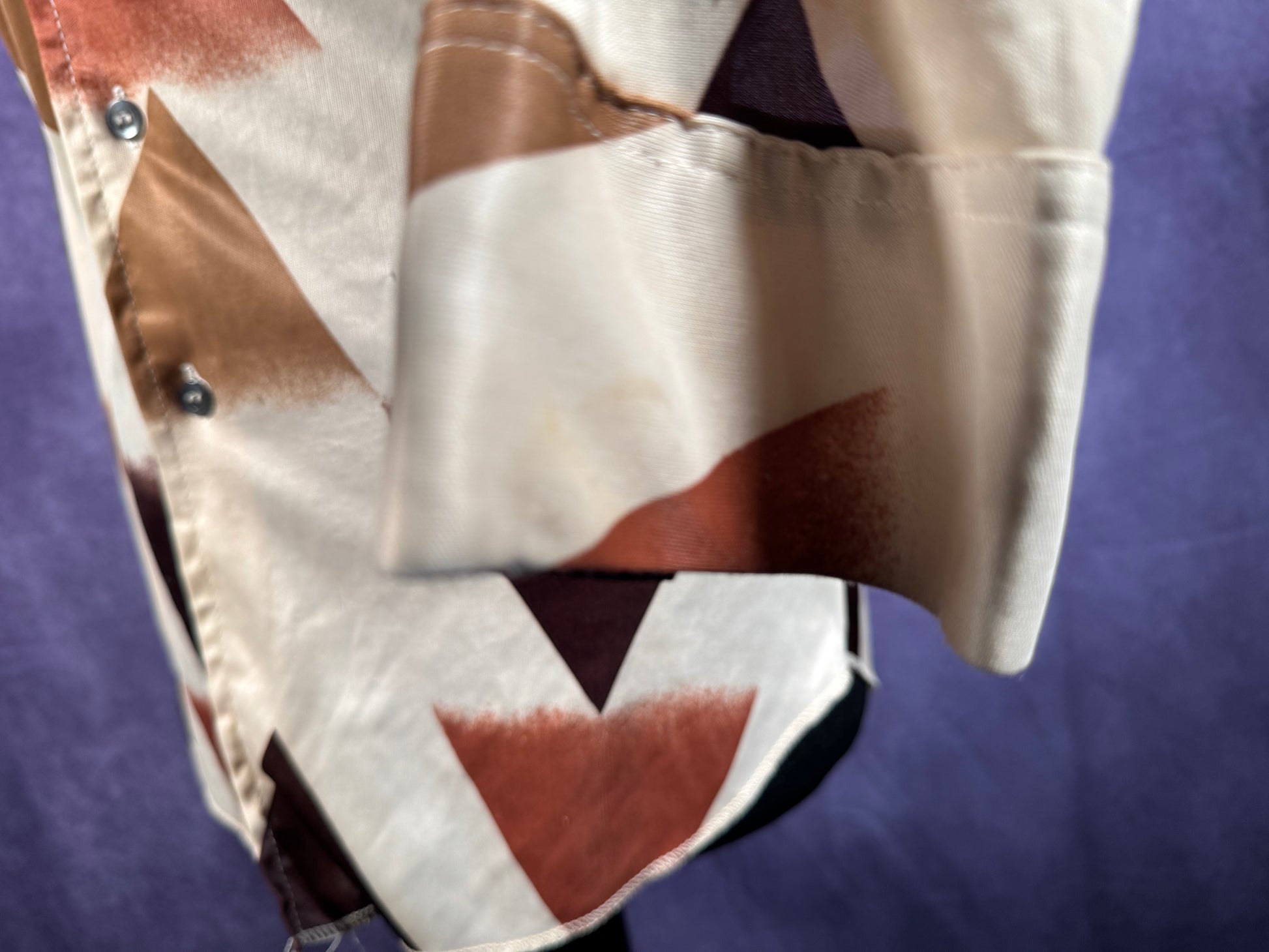 Vintage Mens 1970s Beige Brown Dagger Collar Shirt XS